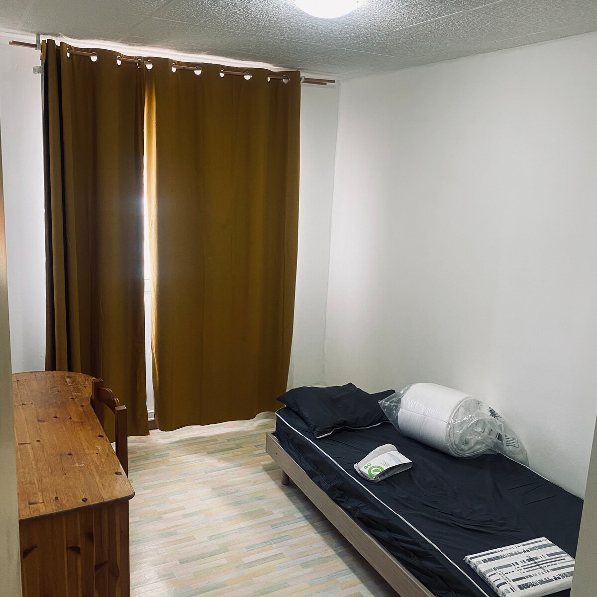 Bright room with double bed, great for a relaxing stay. Access to shared equipped kitchen, bathroom and living room. Located close to the center of Dunkirk and 15 min from the Gravelines CNPE, this space is perfect for professional travelers. Free wifi, central heating, and nearby shops. Great for work trips or short stays for couples.