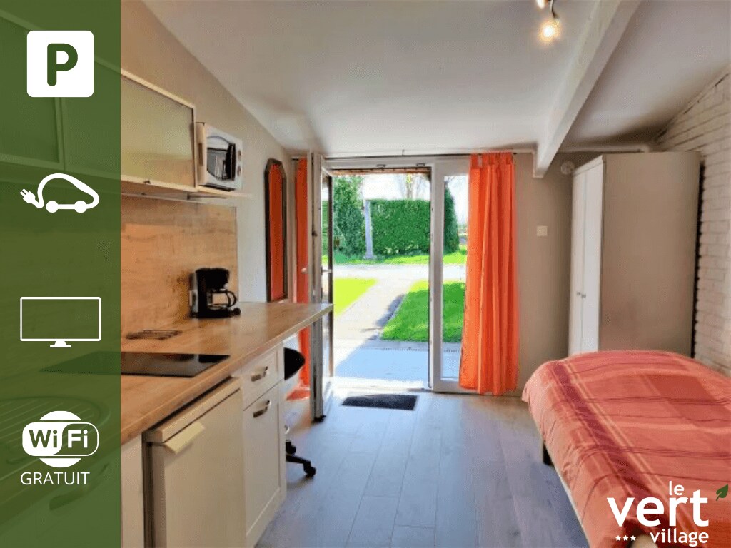 Come and relax! The Vert Village is a beautifully wooded park where this single-story studio of 17 m² facing south awaits you for a most relaxing stay or for a business trip. We are located 20 minutes from Dunkirk and its beach. Tourist points of interest and industrial centers are also close by. See you soon at Vert Village.