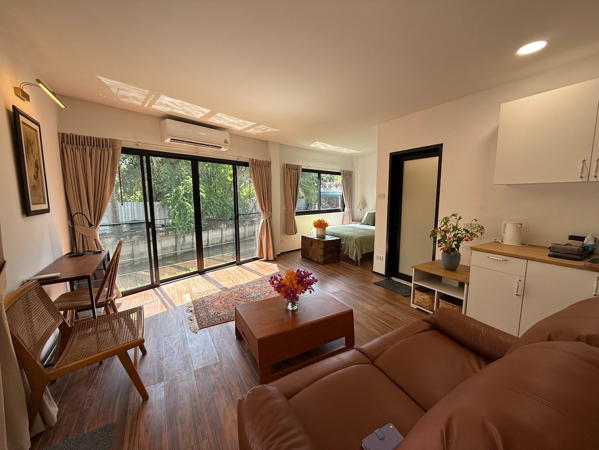 Cozycomo Bangkok is located in the old town area, locally known as Ratchawat Market, 1 km from Chitralada Palace, King Rama9's private residence. This urban home is a studio type accommodation with its private, rain forest style garden on the bank of Samsen Canal.