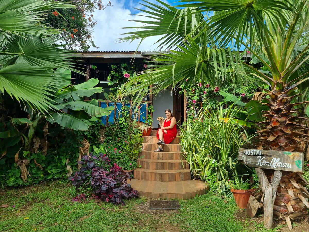Welcome to Moehiva, your home in Rapa Nui. 🗿🏝 Enjoy the tranquility and warmth of our friendly hosts 👫 in a cozy retreat🏘 ideal for couples or families. Our guest🏘 house features an equipped kitchen🥘🍲, private bathroom🚿, a comfortable double bed,🛏 and a half-and-a-half square stateroom. We offer great excursions🗿 that will allow you to explore the magic of the island.🏝 Live unforgettable experiences in a serene and charming environment! 🌺✨