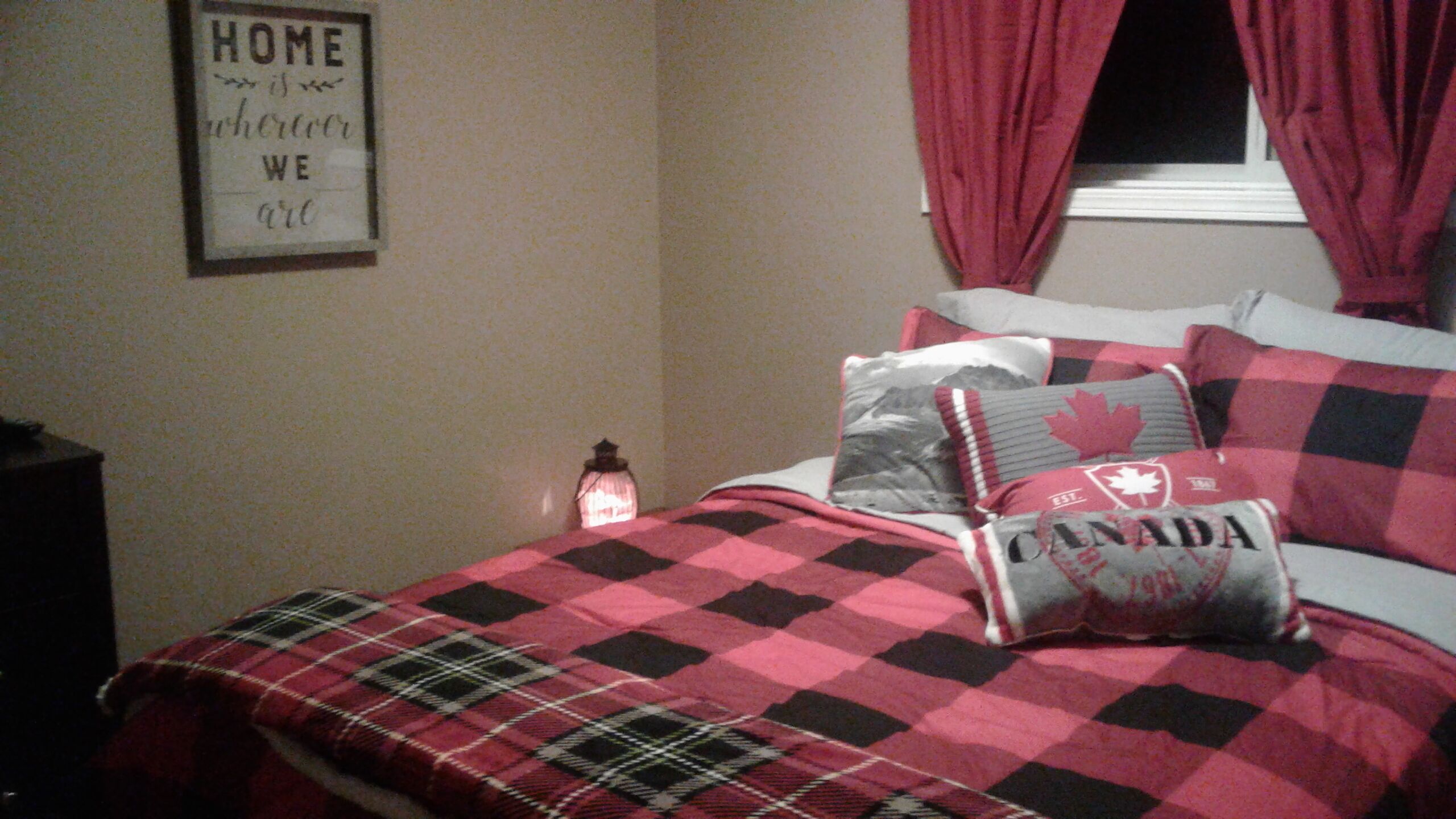 In this executive bedroom, you have your own private washroom. Enjoy your own TV with cable and access to free Wi-Fi. You have all the comforts of home or similar to a hotel with your own mini fridge, own Keurig with several different coffee pods, own kettle with several different teas and hot chocolates, own toaster and own microwave. Enjoy your own electric fireplace. Fan provided if needed. Overlooks entire house. Queen sized comfy bed.
