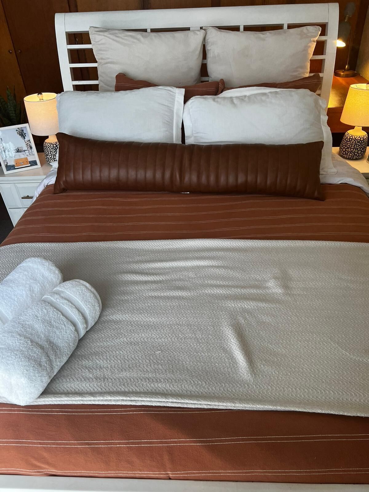 - Our accommodation has two queen-size bedrooms, both with "Saatva Luxury Mattress" mattresses, it also has a sofa-bed (twin size) in the living room.