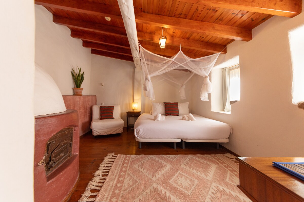 Don't worry, our Casa Rosas is not completely pink nor full of roses. But you will definitely notice the romantic touches. Although looking out on our pool, you'll still feel the privacy and coziness you want. In this room you don't only have a double bed, but also a kitchenette, chill area and private bathroom. Besides that, you'll find the old stone-oven we kept as decoration. You won't need it to heat up the room though. The sun, the soul and the romance will take care of that!