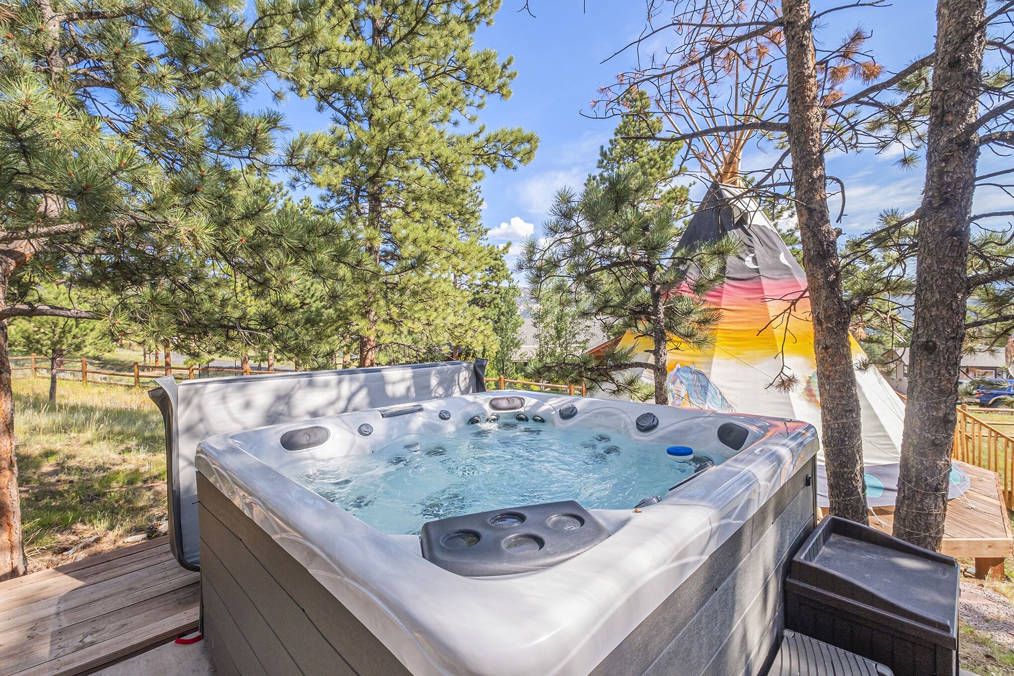 Outdoor hot tub available for all guests to use.