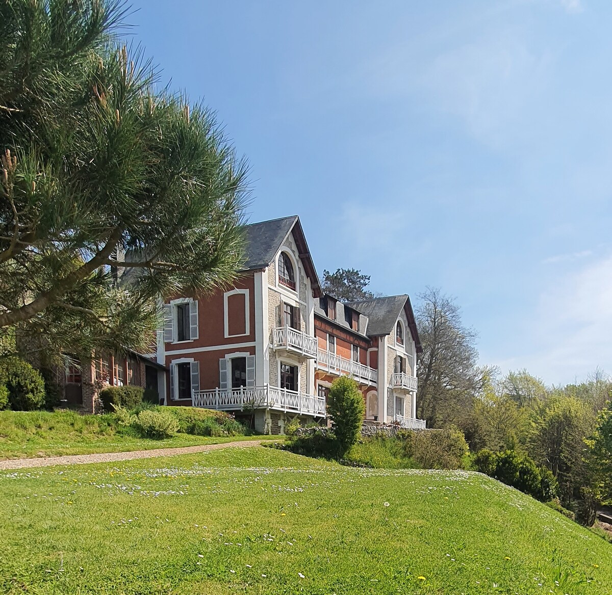 On the first floor of the Villa built in 1858 by the composer Jacques Offenbach, the room is oriented South-West with a view overlooking the sea, the cliffs and the seaside resort. It has its own balcony and its own ensuite bathroom/toilet. We also provide a free covered parking space. Not all common areas of the house are completely renovated, which gives the place its authentic and original character.