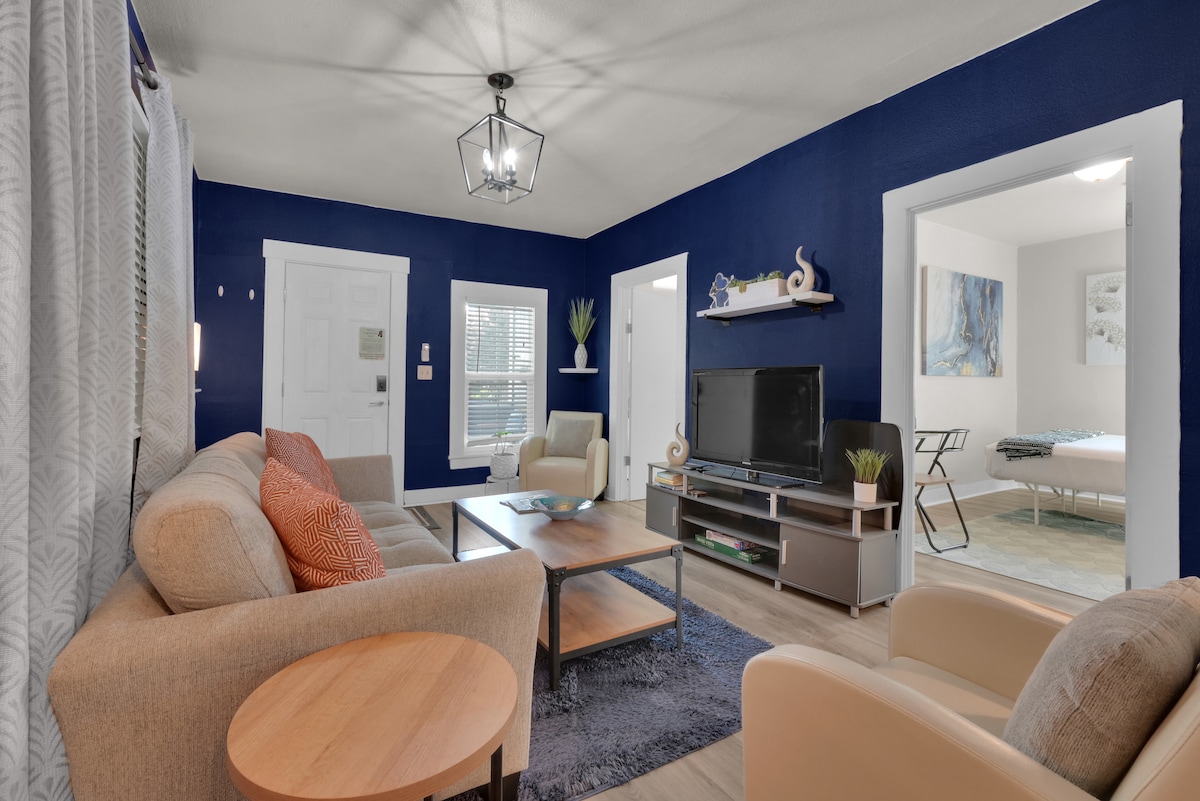 Step into a timeless retreat! Built in the 1950s, this home seamlessly blends vintage charm with modern upgrades. Revel in two inviting bedrooms, each boasting a cozy queen-sized bed and ample closet space. Unwind on the brand new couch in the living room, so you can be cozy and comfy while relaxing. The galley-style kitchen is a culinary haven, featuring a full range, refrigerator, microwave, and coffee maker. Immerse yourself in the culinary arts with provided utensils for seamless cooking and dining experiences. Embrace the allure of the past with the convenience of the present in this meticulously updated gem.