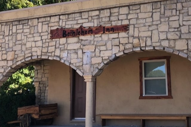 The Bethlehem Inn offers a kitchenette, living area, bathroom as well as a private King-sized bed in the bedroom. The back deck overlooks the trails at the Passion Play.