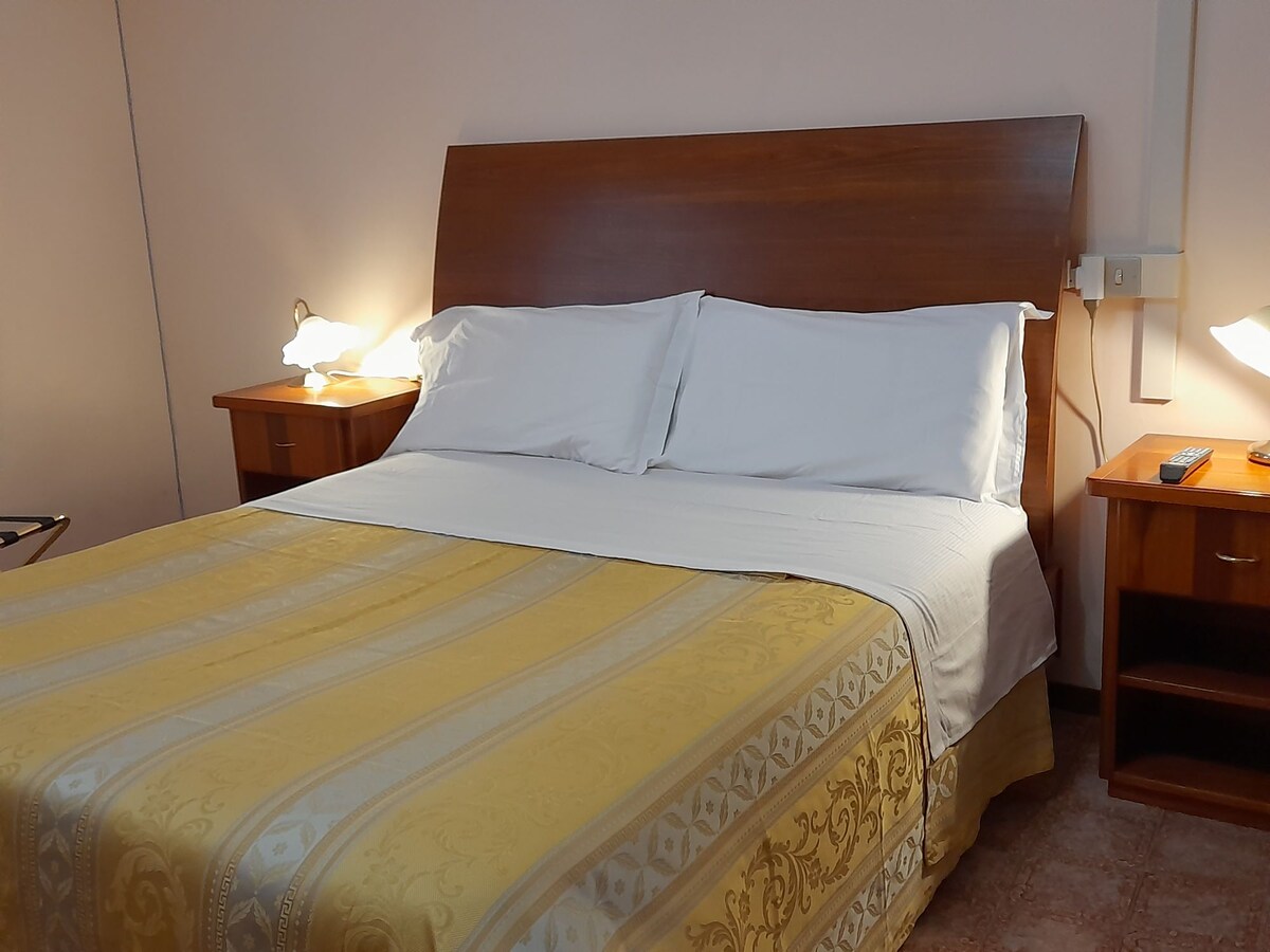 The heart of the room is the king-size double bed, large and comfortable, enriched with fine linen and hypoallergenic pillows. The spaces are optimised to offer practicality and relaxation: a desk, flat-screen TV, high-speed Wi-Fi, independent air conditioning and adjustable lighting create an ideal environment for both resting and working.