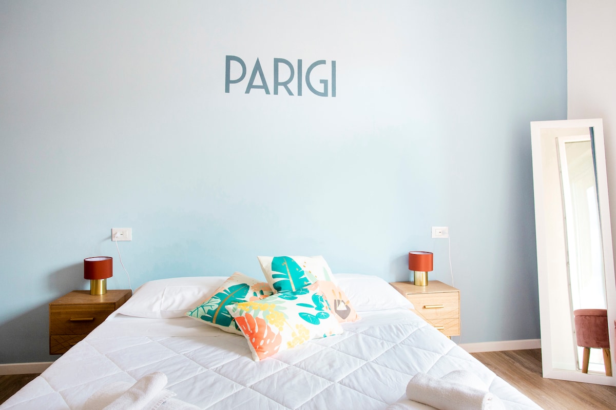 Spacious and bright double room with private bathroom, located inside a completely renovated apartment. The only common sharing area is the entrance to the apartment. Guests have access to bath and bed linens, a hairdryer, in-room TV, air conditioning, and free Wi-Fi.