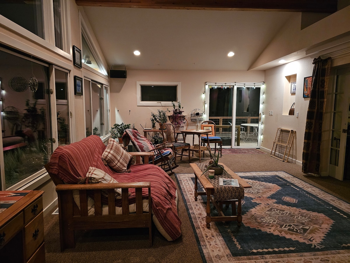 Private entrance to your private space with private yard and patio. Set on 2 acres with lots of unique private businesses close by coffee shop, winery,homemade candies.