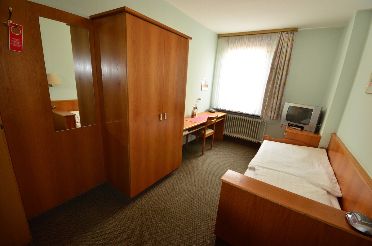 A room with living/sleeping area, small fitted kitchen, bathroom with shower/toilet. Central, quiet location in the middle of the Rhine Main area; 500m to the S-Bahn station; 500m to the highway.