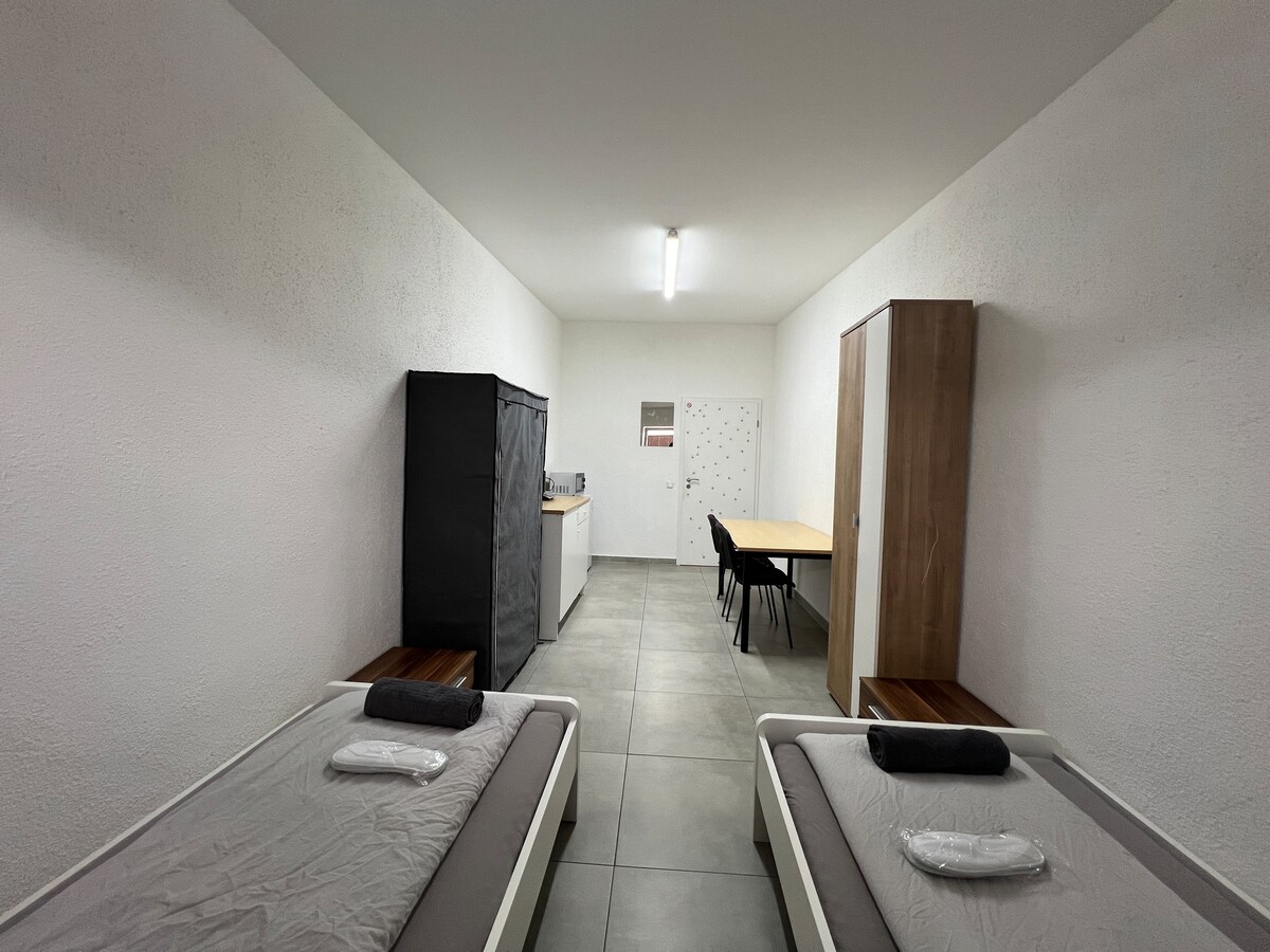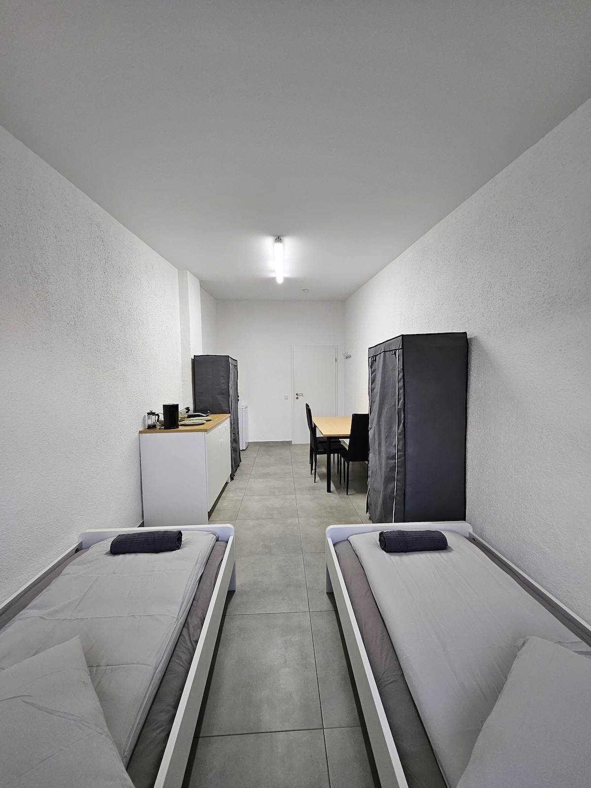 It is a fully furnished room on the 2nd floor in a very central location of Offenbach just a few minutes from the market square. From here you have the perfect access to public transport. Your room is lockable. There are always six rooms per floor with two bathrooms and a fully equipped kitchen. Wi-Fi is included as well as a laundry room with washing machine and dryer.