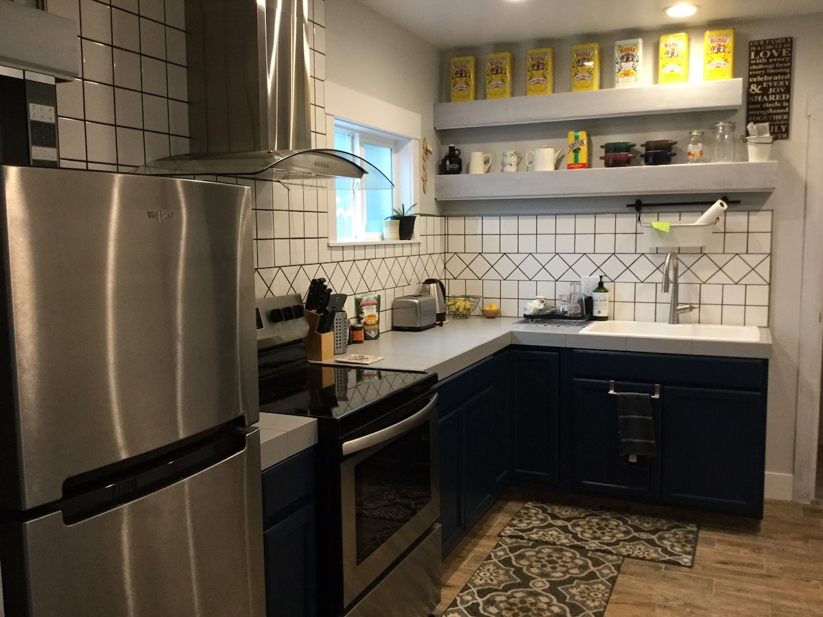 University Cottage is a cozy, private guest studio, steps from Fresno High, Kuppa Joy, Ampersands, Moto, & Gorilla Quesadilla. Walking distance to Tower. It sits behind a Historic House-also an Airbnb-with a Scandi-vibe. Tucked safely behind a secure gate, the relaxing respite is a great stay for business travelers, adventurers, or 2 peeps. Has an efficiency kitchen, new beds, Smart TV/WIFI, coffee pot, tea kettle, and comfy sofa. At University Cottage, you’ll destress the minute you walk in.