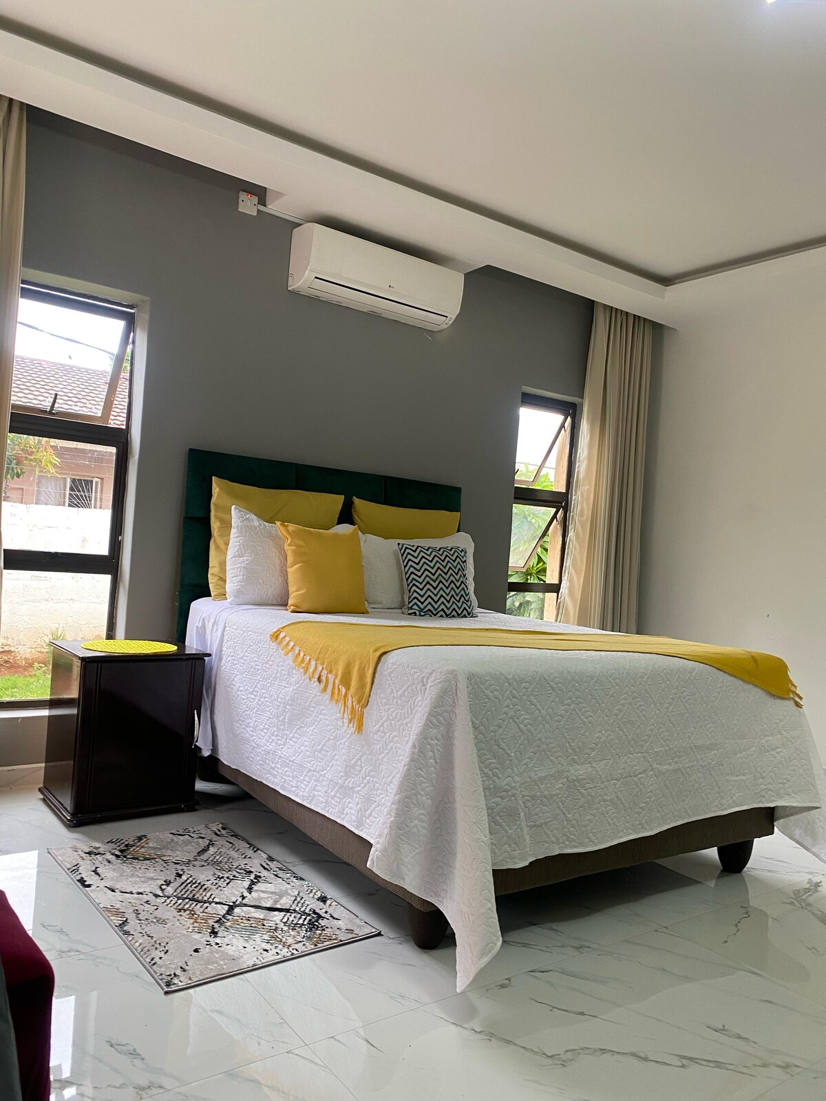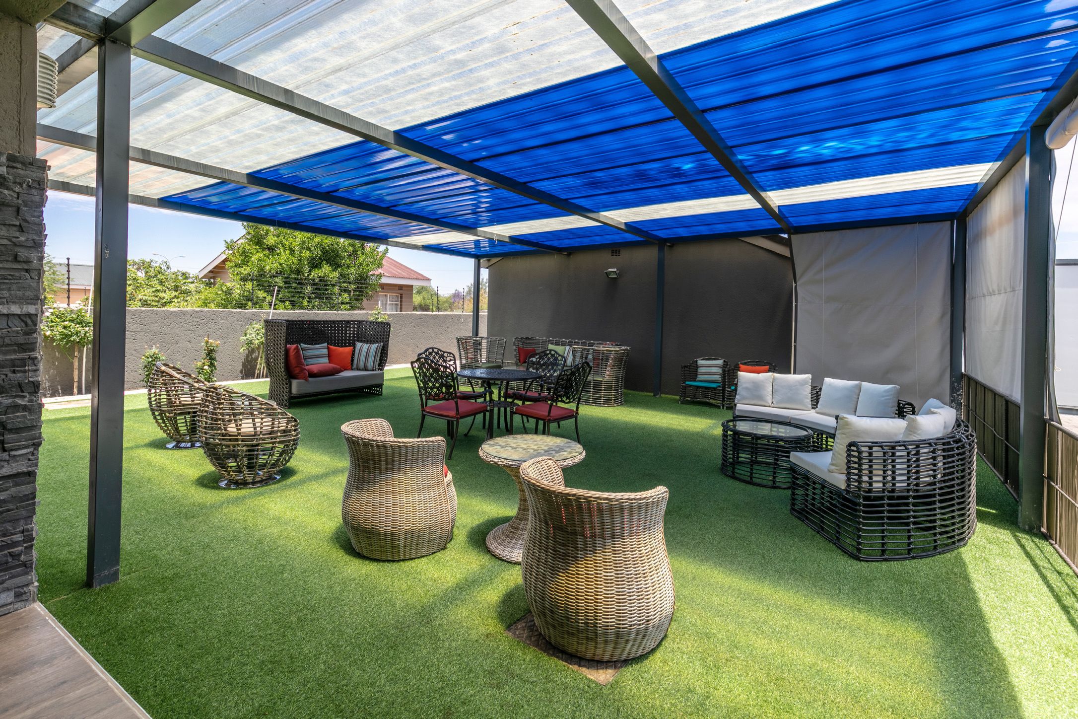 Enjoy a stylish experience at this centrally-located place. Proximity to 3 Malls, 7 minutes drive from the airport. Serene, Comfort, luxury in a spacious and well sort after area. Very clean with air conditioning in every room. Relax and wind down in a beautiful Pool with nice patios. Beautiful gardens and a great playground for the little travelers. En-suite private rooms with self catering available in our beautiful kitchen. Plenty amenities, great lounge space and luxurious duck down bedding
