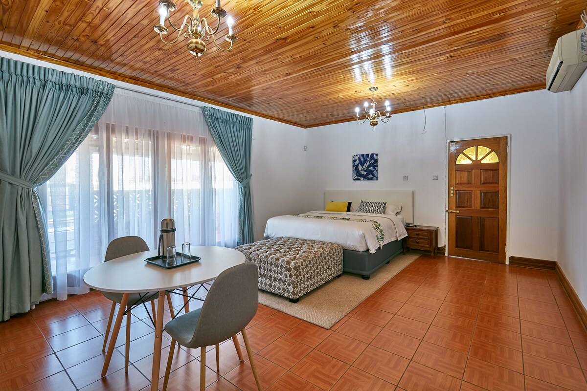 This stylish ensuite room to stay is perfect for a business or leisure travel. Located in the pristine 1 hector Tlokweng Rose Garden. It has private balcony, king sized bed, bath tub, telephone shower , aircon, smart TV connected to Netflix. Offering horse ridding and quad biking on the weekends.