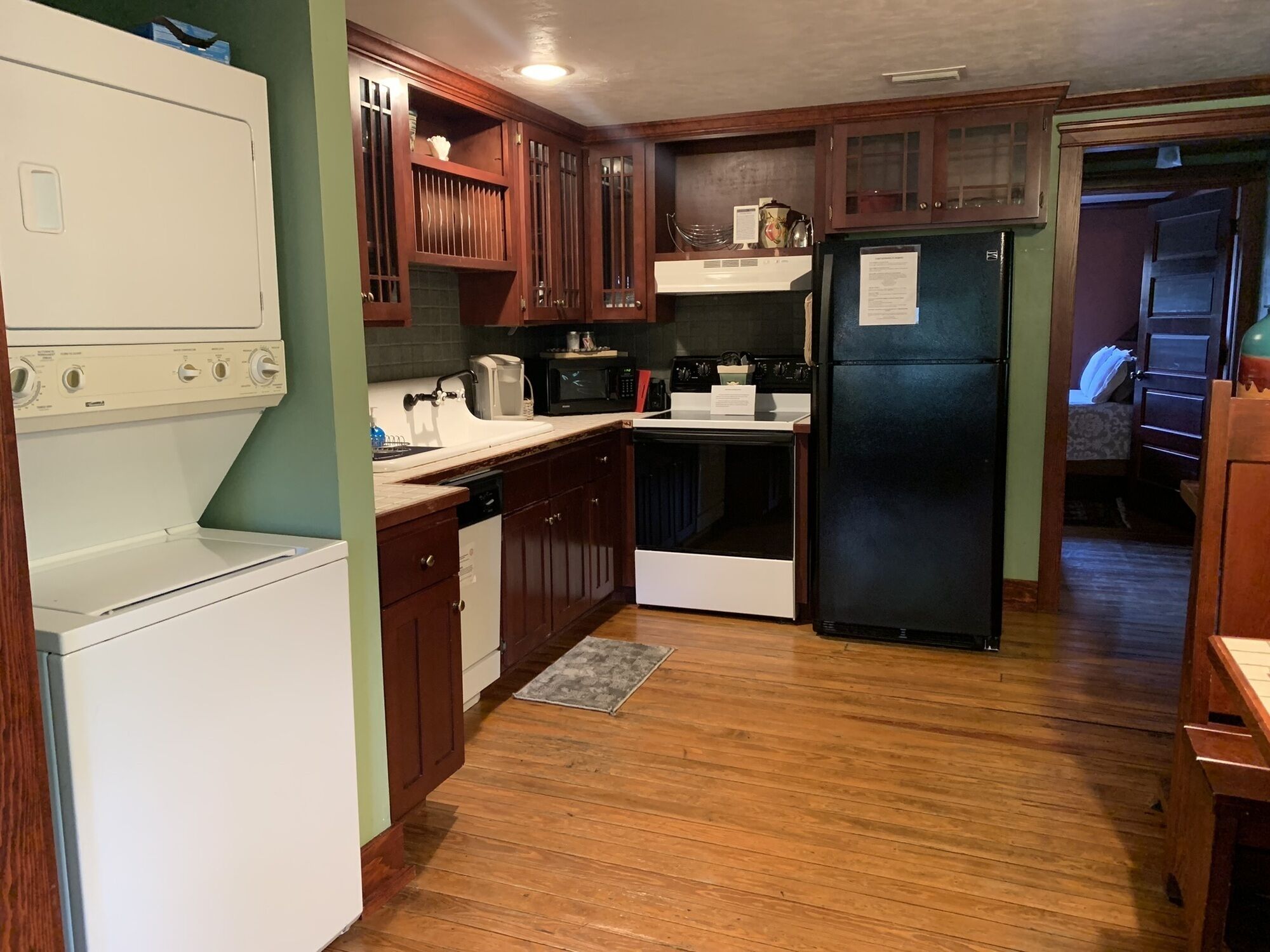 The Carriage House is located on the second floor above the office, has central A/C with a private thermostat, Wi-Fi, one reserved parking space, and is pet-friendly.