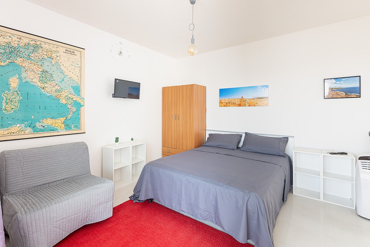 Studio apartment of 30 square meters with kitchenette,large bathroom and balcony; all pertaining to guests. Ability to add single bed