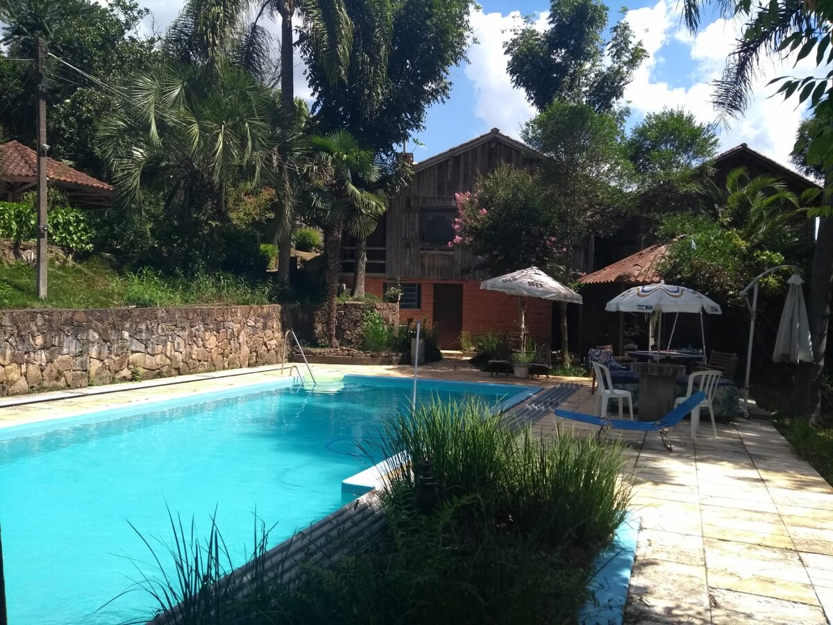 Relax with the whole family in this quiet accommodation. Perfect place to relax and enjoy in comfort! Here you have a camp stove, pool table, complete kitchen with everything you need, garden, swimming pool and a breathtaking sunset. The house has Wi-Fi, Netflix, Globoplay and that nice countryside atmosphere to make you feel at home.