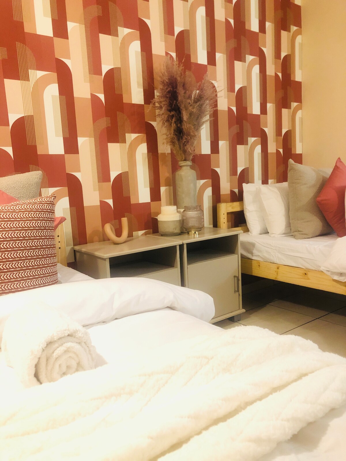 This modern modern room offers a luxurious and convenient stay, furnished & decorated to high standards. It includes an en-suite bathroom, uncapped WiFi, DSTV with various channels, and a dedicated workspace, ensuring all your needs are met. The property's prime location provides easy access to Sandton (15km) and OR Tambo Airport (10 min), with East Gate, Bedford Centre, and Village View, just 5 minutes away. Whether for business or leisure, this accommodation promises comfort and convenience.