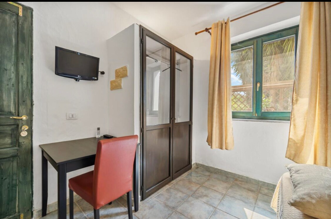 Two-room flat is a 48sqm unit located in a dependance inside the Mediterranean garden of the Residence, Residenza Su Prelau, on Sardinia South West Coast.
