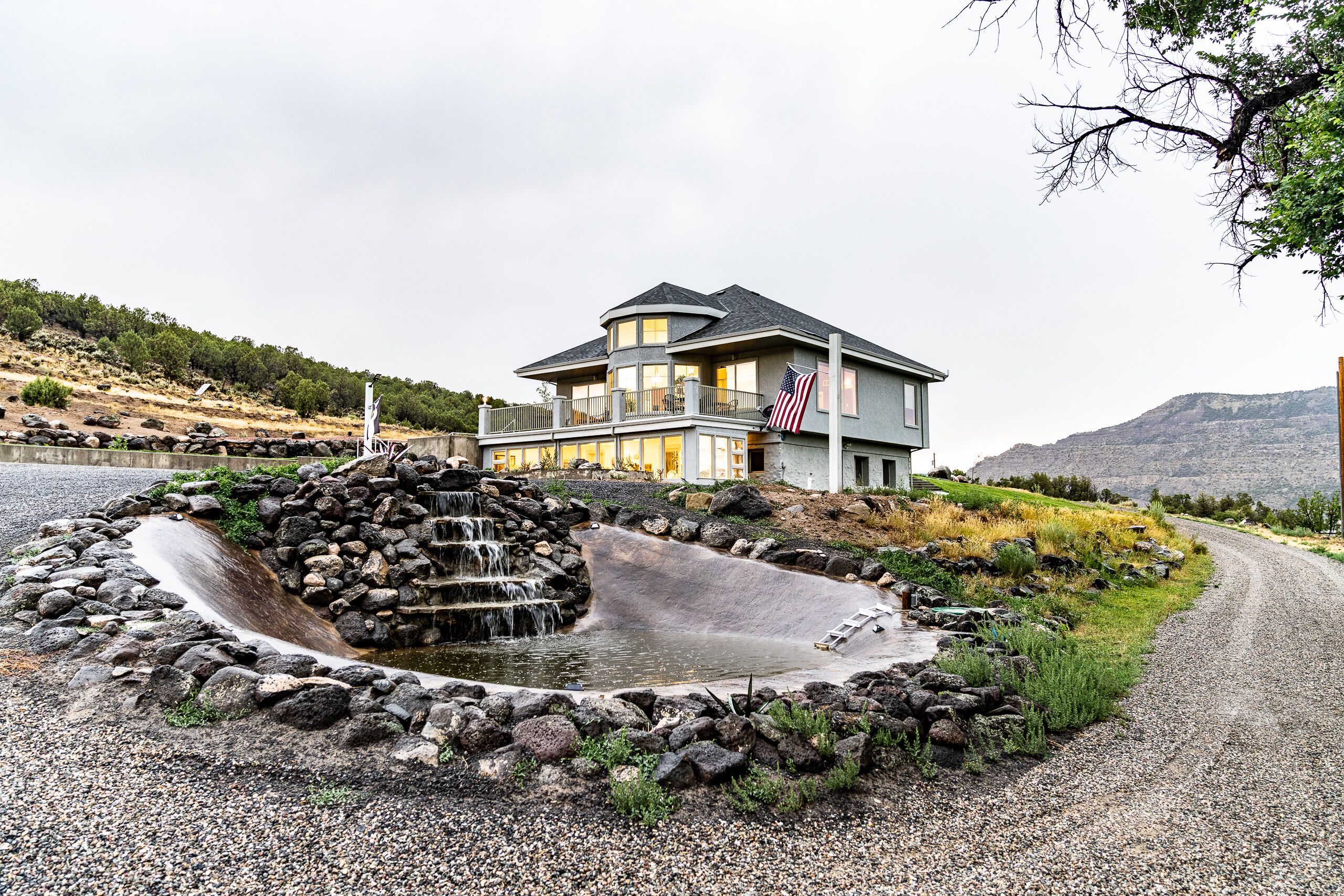 We are on a 1 acre lot at the foot of Mt. Garfield with a peach orchard across the street and agricultural fields out back.