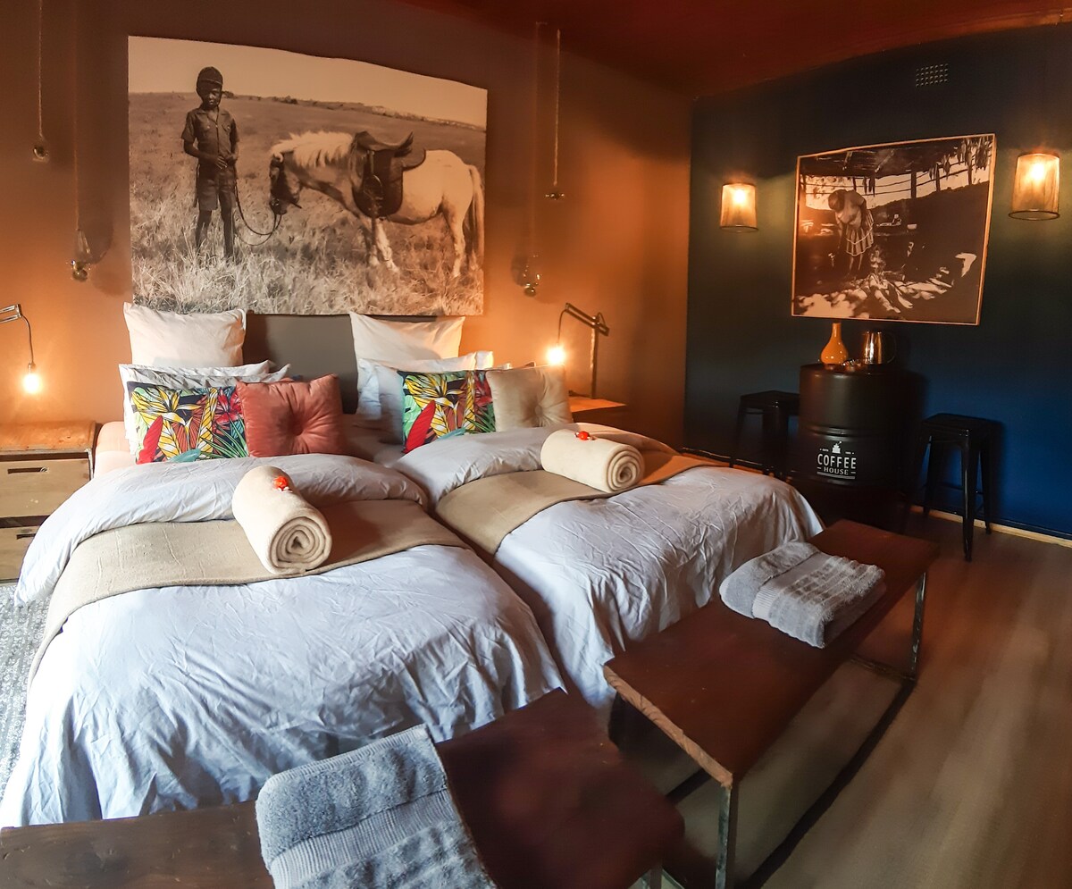 Each room is furnished with twin beds that can be converted into king-size beds and share a bathroom with shower and bath. Bathroom is situated across the room in the passage. Tea and coffee facilities are available in each room. The rooms share a communal living area and kitchen.