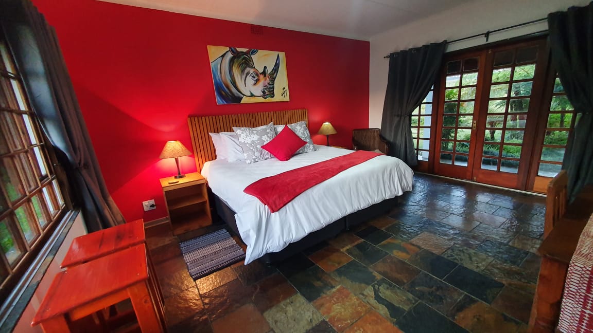 Large comfortable room upstairs with private entrance via outside staircase; has two single beds and on-suite bathroom; balcony with beautiful views over Graskop village; TV offering basic channels, Wi-Fi; air conditioning for heating and cooling; mini bar fridge.