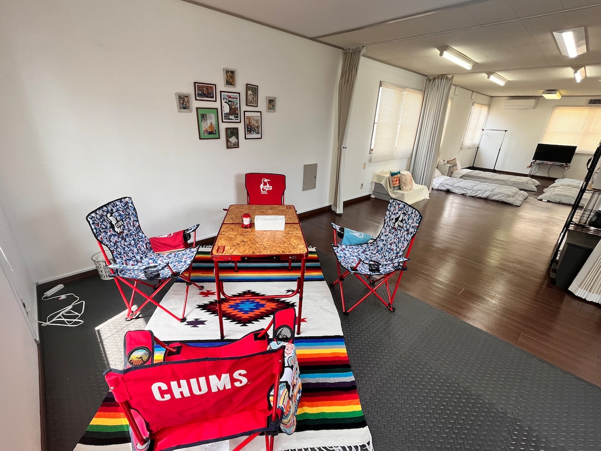 * If you bring a tarp, barbecue stove, etc. in the garden (outdoor space), you will be charged a separate camping fee (1,000 yen per person).If you want to barbecue in the garden, etc., please message us at the time of booking.