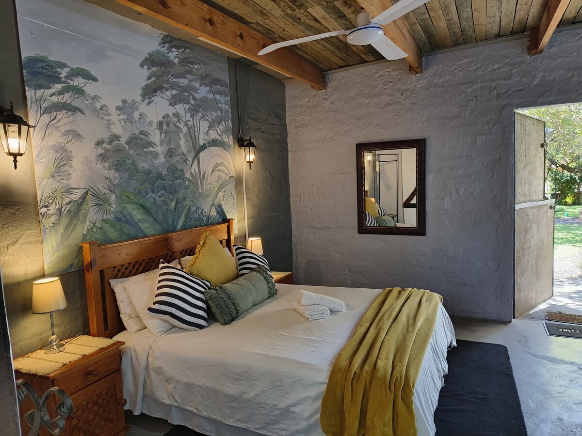 The open-plan, pet-friendly room has a queen and single bed, it can be removed on request. The en-suite bathroom is fitted with a bath and shower. The kitchenette has an induction stove, a dining area, and a TV with selected DStv channels and Wi-Fi.