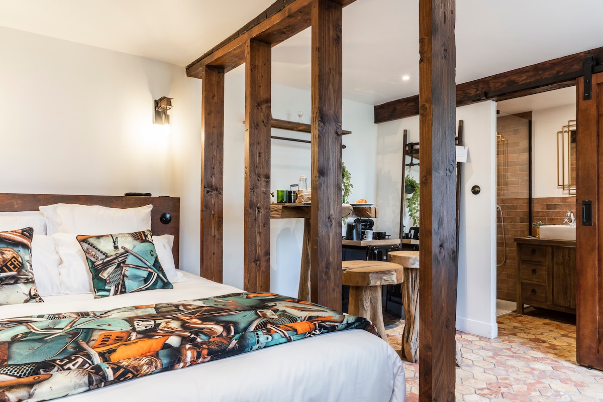 Just 50 meters from the Bassin d 'Honfleur, find the beauty of Normandy in this room with a nod to the Haras du Pin which will seduce you from its authentic beams and its sea rush made in Deauville. You can take advantage of the terrace overlooking the courtyard of Les Petites Demoiselles.