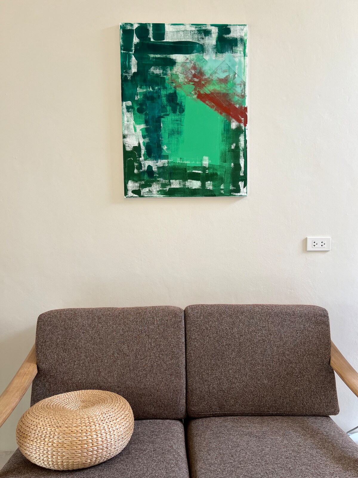 1 living room by the balcony for relax with natural environment, that why no air-condition at the living.