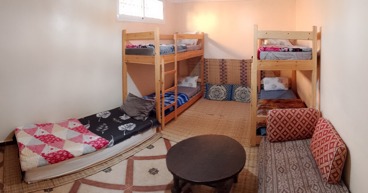 Welcome to Taouarguit Guest House! A few minutes from the surf beaches and the fish market, our mixed dorm offers super comfortable 1m/2m beds. It can accommodate up to 6 people with 3 bunk beds and a shared bathroom. Each guest has a personal locker and 100Mbps WiFi. This is the perfect place to meet guests from all over the world.