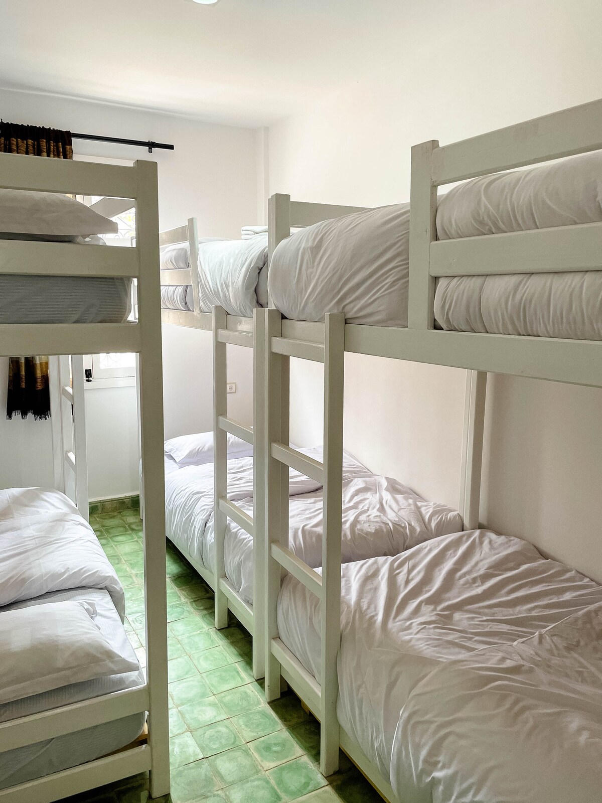 Spacious dormitory overlooking all the mountains of Imsouane. The room sleeps 4 with two bunk beds, three shared bathrooms. A common area to share good times and a terrace with views of the cathedral and the entire city.