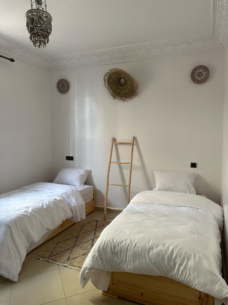 Ideal stay: spacious rooms, 200 m from the bay, 100 m from the cathedral. Surfing lessons, yoga, Moroccan meals. Comfort, activities, contact us!