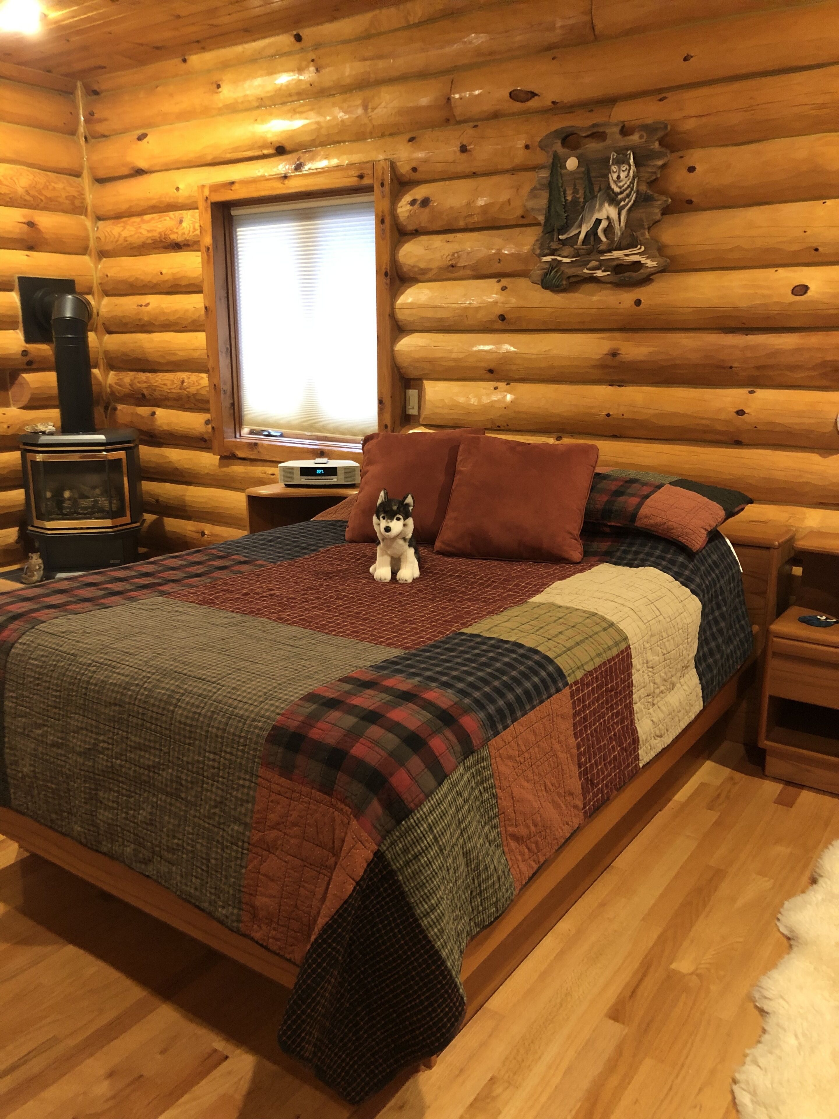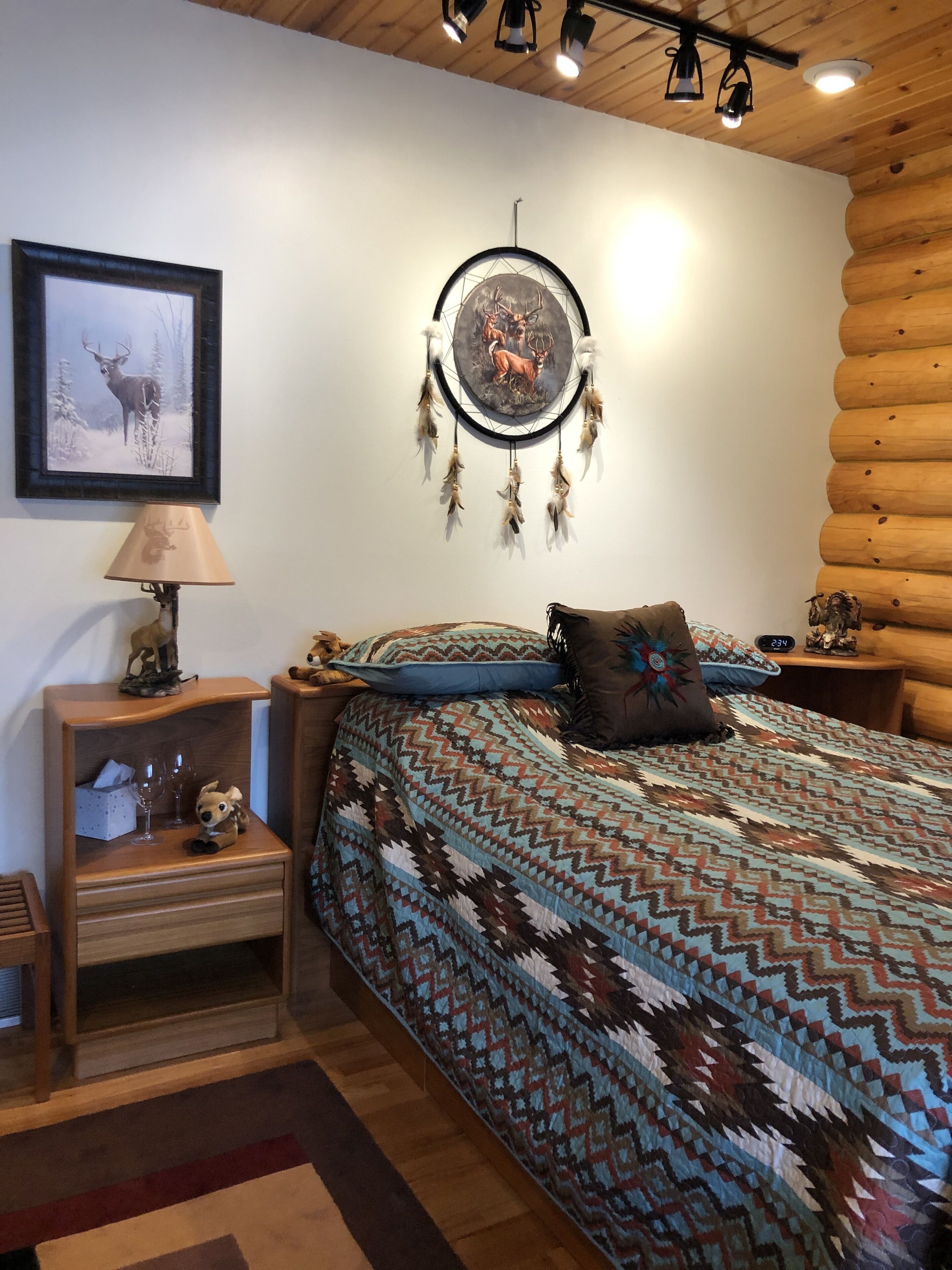 Beautiful log cabin Bed & Breakfast with 3 spacious rooms all with en-suite bathrooms. (see Whitetail and Timberwolf rooms also on VRBO). Please note that with a B&B you are not renting the entire house. You are renting a room and we supply you with a delicious home-cooked breakfast. We reside on the premises as this is our home.