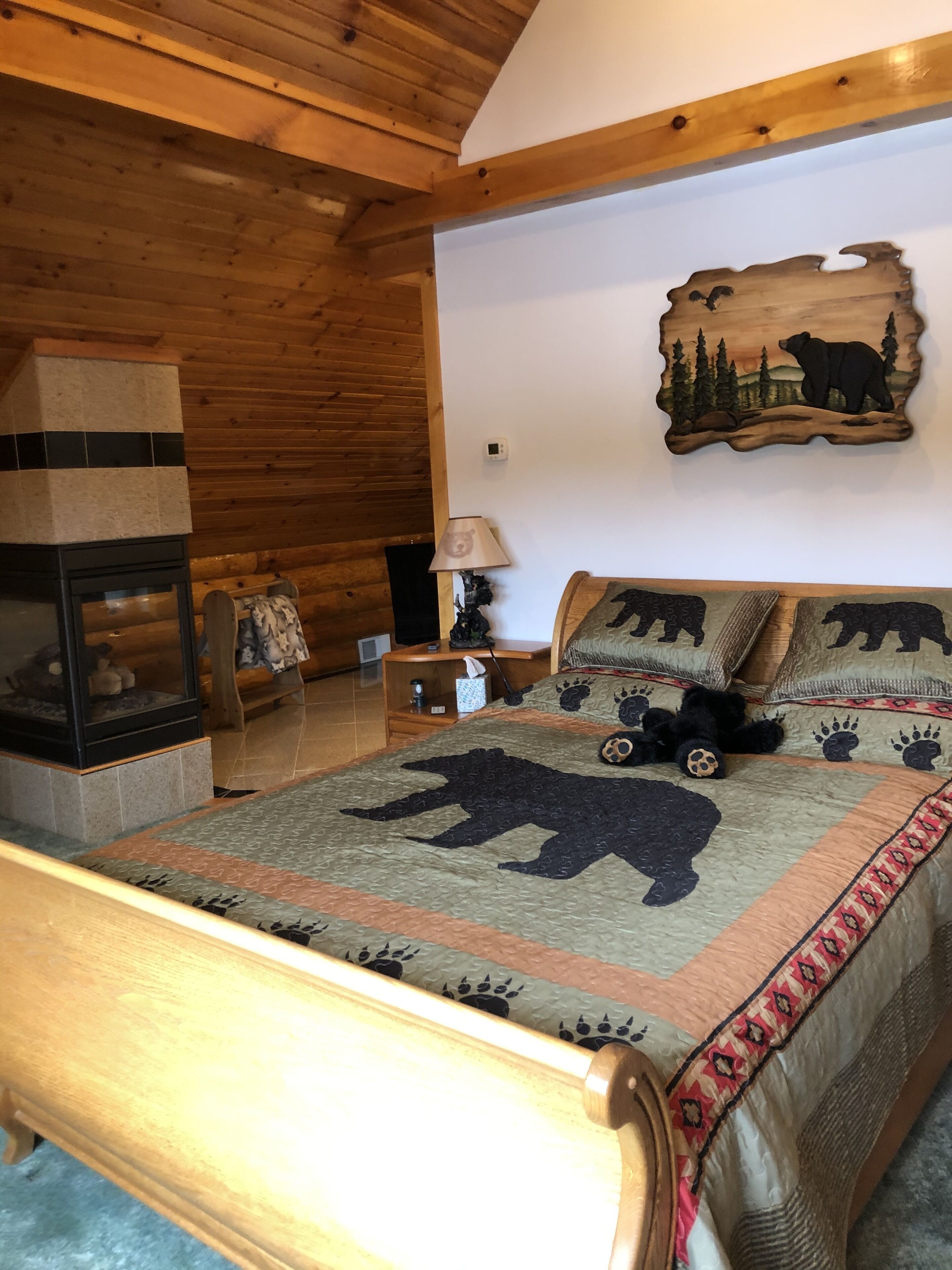Beautiful log cabin Bed & Breakfast with 3 spacious rooms all with en-suite bathrooms. (see Whitetail and Black Bear rooms also on VRBO). Please note that with a B&B you are not renting the entire house. You are renting a room and we supply you with a delicious home-cooked breakfast. We reside on the premises as this is our home.