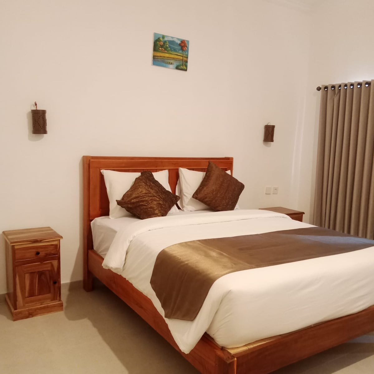 Guests are welcome to enjoy the beautifully crafted Joglo-style house, comfortable bedrooms, and a simple equipped sharing kitchen.