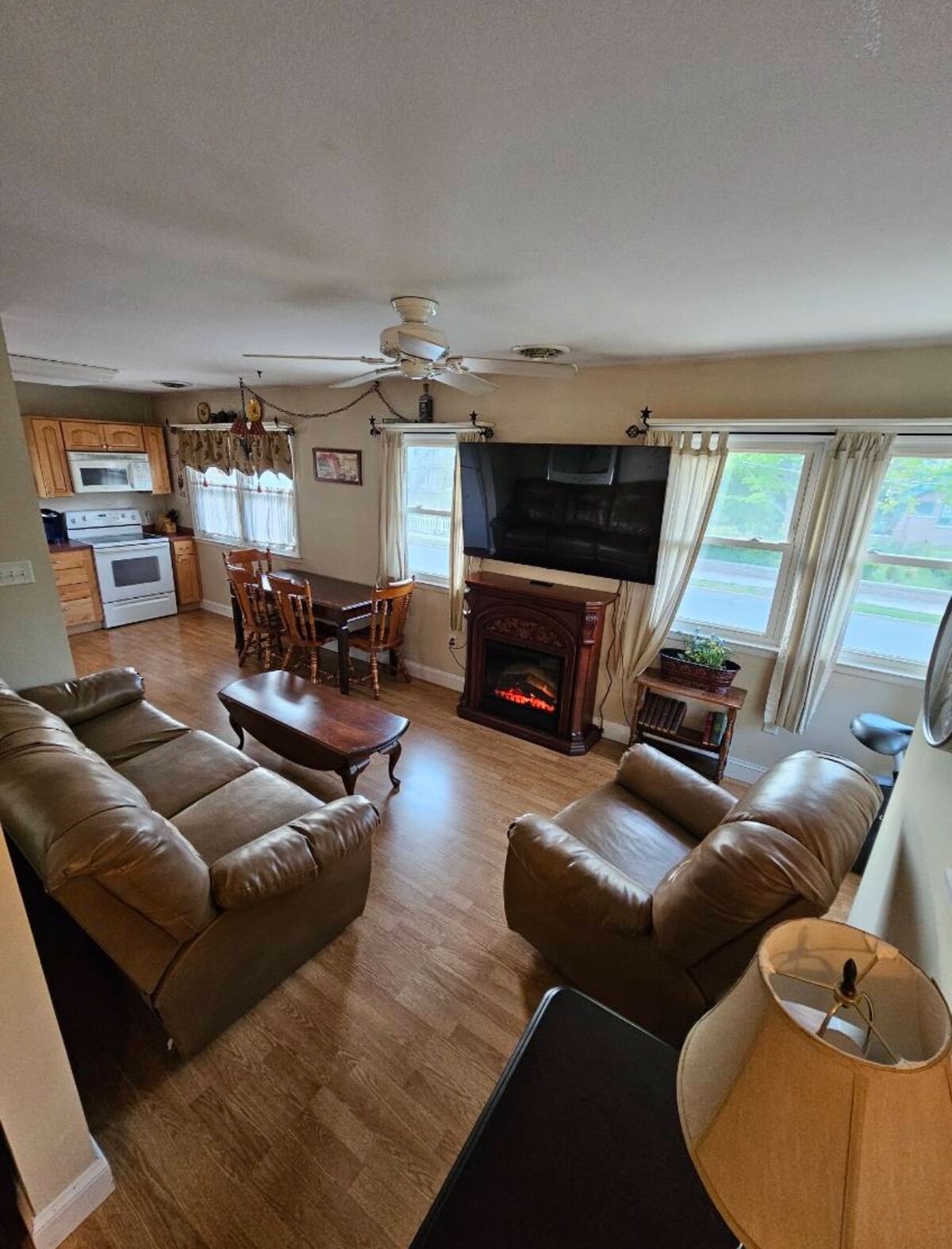 An extra living room on the first floor is available for your use if you want to sit, relax or even snack while you watch some television outside of a bedroom setting.