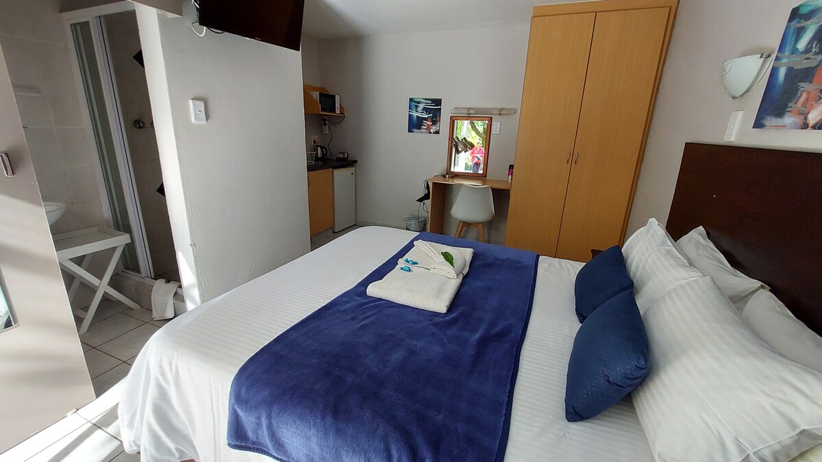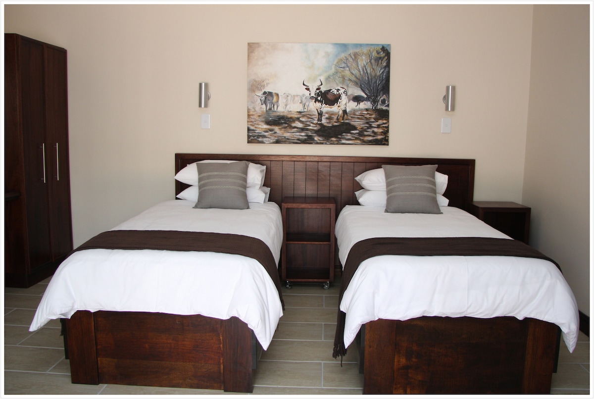 The non-smoking room is ideal for 2 people and is furnished with 2 single beds. The room has an en-suite bathroom with a shower, and linen and towels are provided. The room has a kitchenette that is equipped with a small fridge, a microwave. TV with DStv.