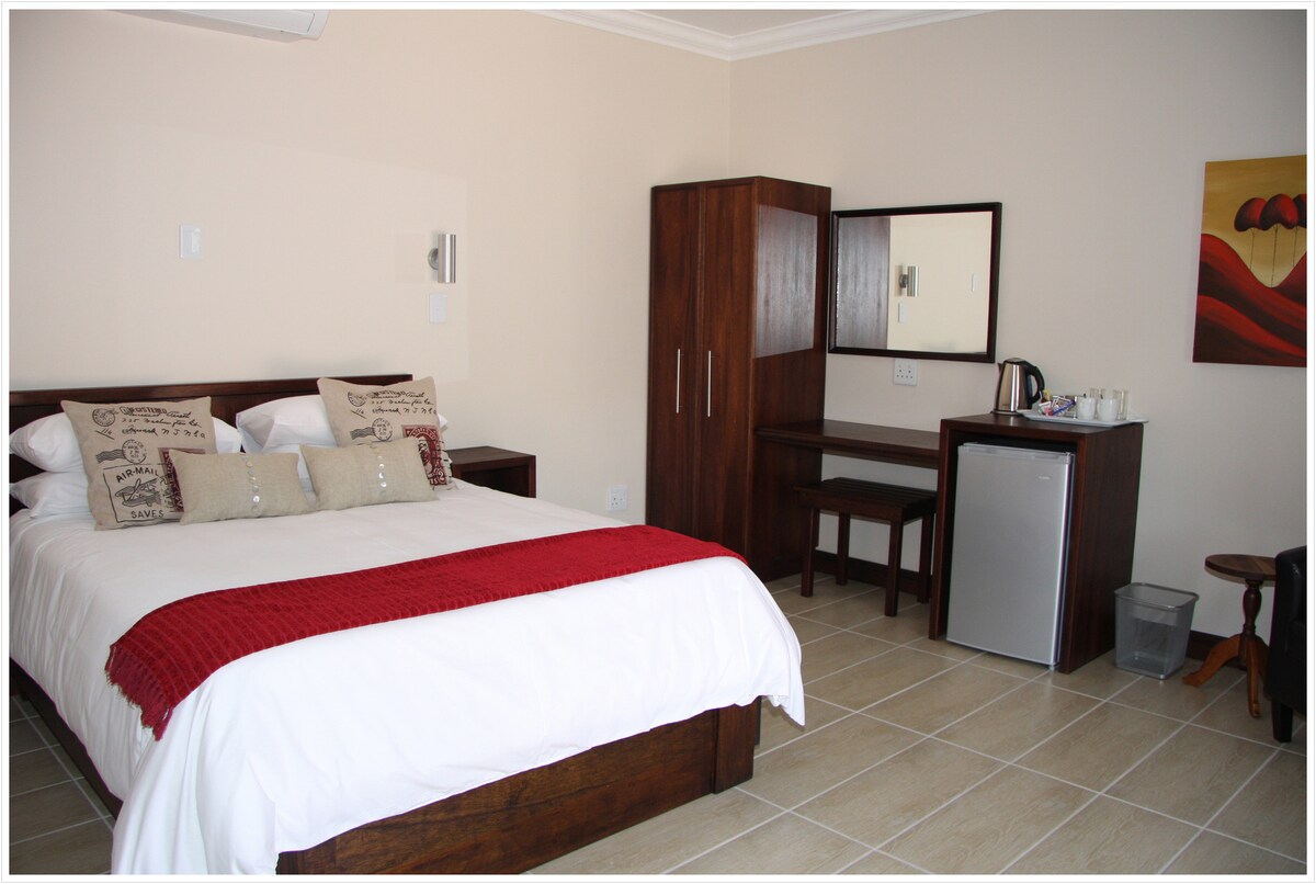 Each comfortably furnished standard room offers a double bed and an en-suite bathroom. Each room contains air-conditioning, a TV with DStv, a bar fridge, a desk, a microwave, free Wi-Fi access, and garden views.