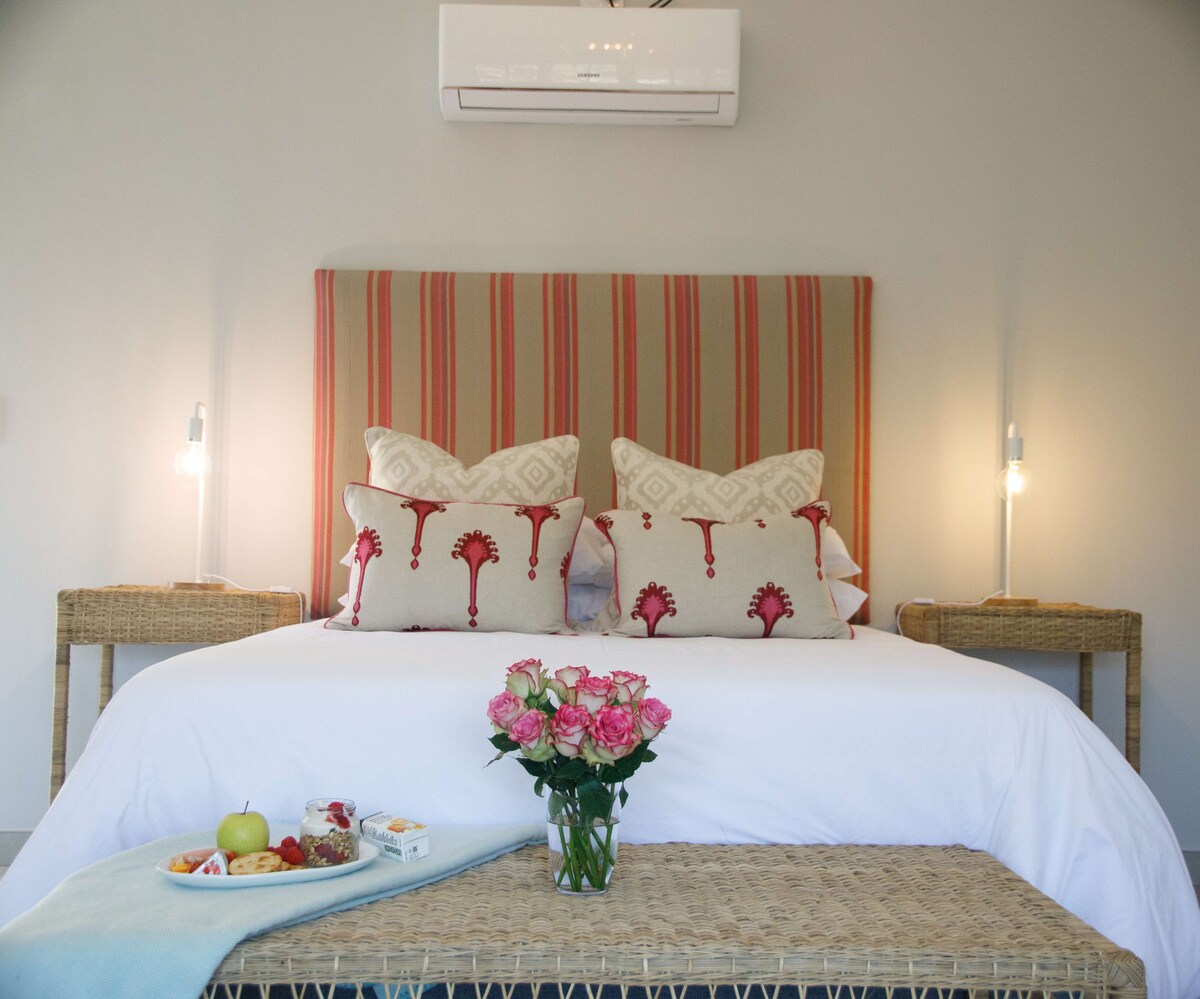 The property boasts three comfortable double bedrooms, each with its own ensuite bathroom and dedicated outdoor space. The largest of the rooms is "Casablanca", our Master Suite, located on the ground floor, featuring a king-size bed, glass stacking doors onto its own patio, and a full ensuite bathroom with shower and large bath fed from rainwater reservoirs.