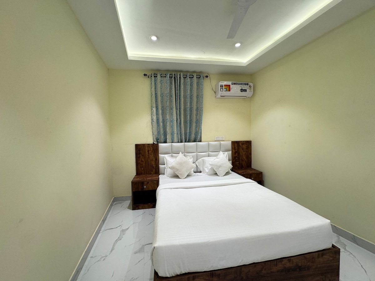 A queen sized Bed ,Ac room a dedicated work space & Clam environment is what you get to kick back and relax in this guest house.