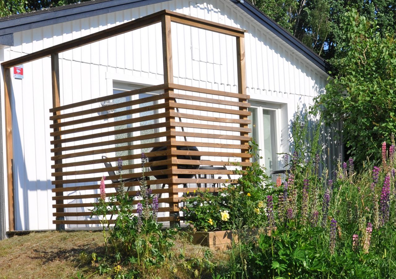 Fresh cottage with patio and small garden. Parking for one car with the possibility of daytime charging. Fully tiled toilet and shower, kitchen, sleeping loft that especially the children love.