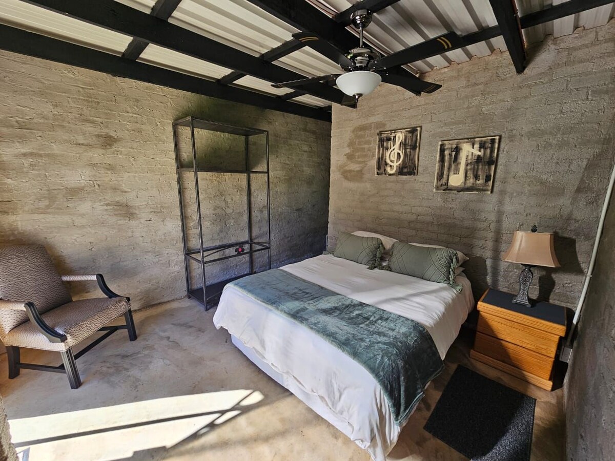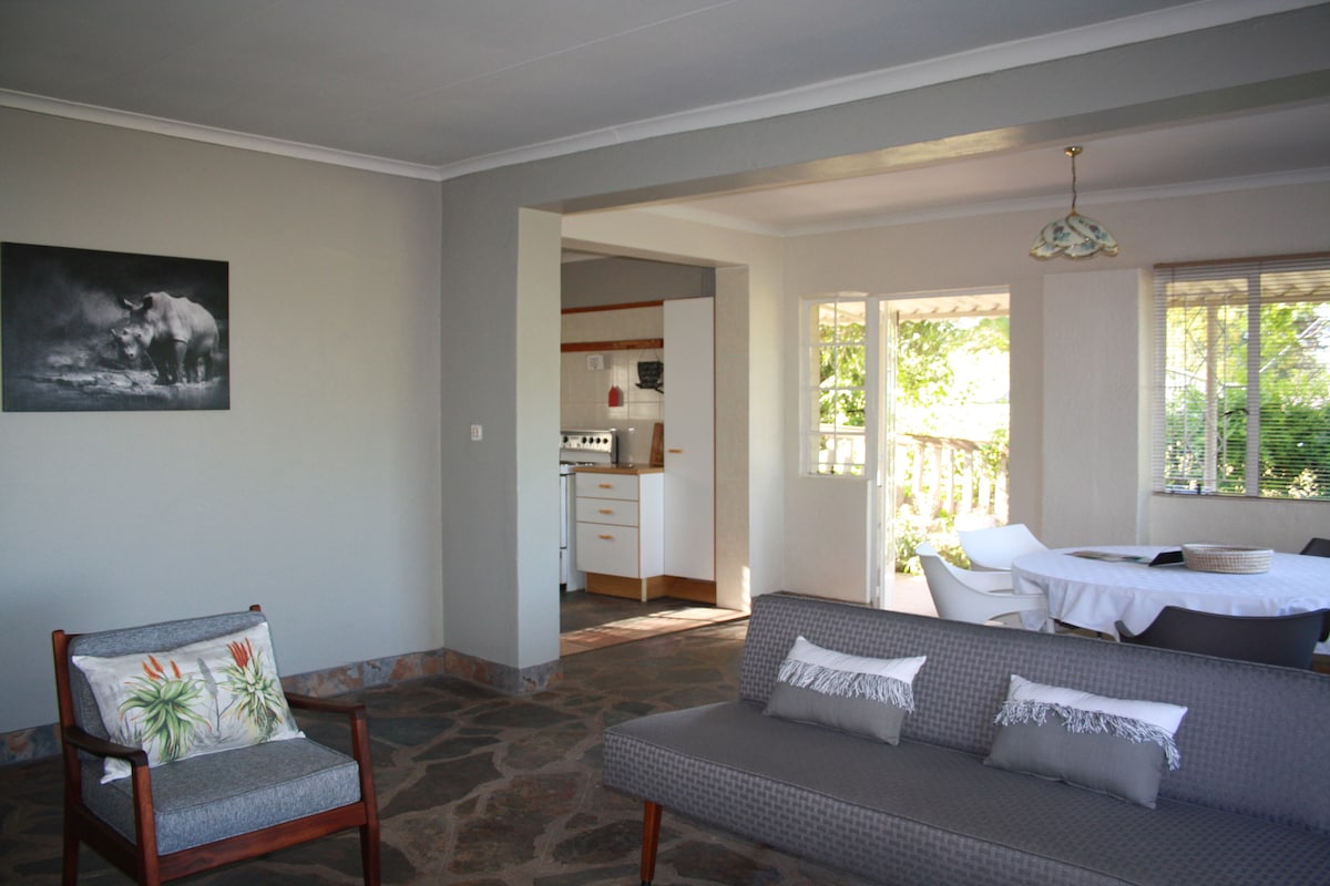 One bedroom guesthouse with ensuite bathroom and shower. Uncapped Wi-fi and DSTV available. Peaceful patio eating area and own private entrance.
