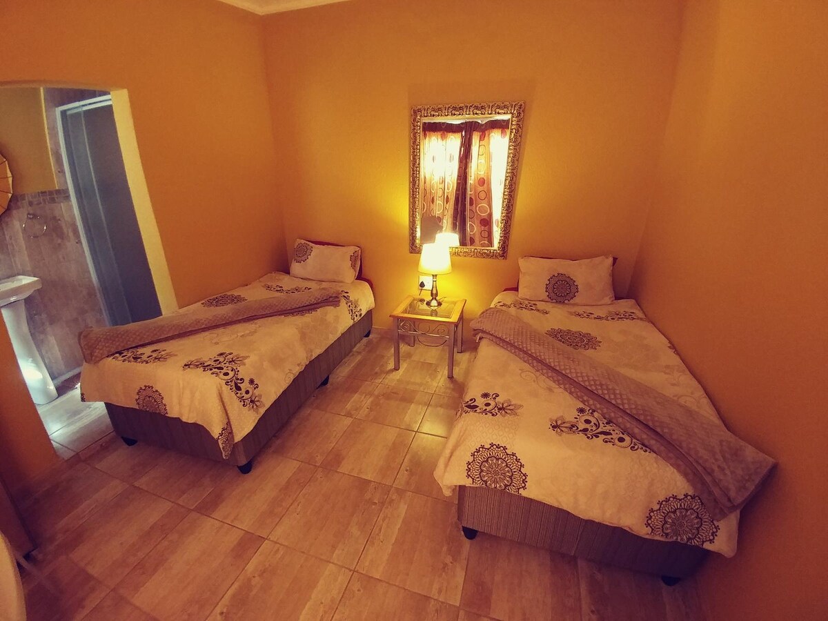 Room 9 Ground Floor Inside the house. A Double Bed for adults and 1 Single Bed for kids. This room comes with a Bar Fridge, TV with DSTV Included is a Self Service Tea/Coffee Station and an En-suite bathroom - Shower only.
