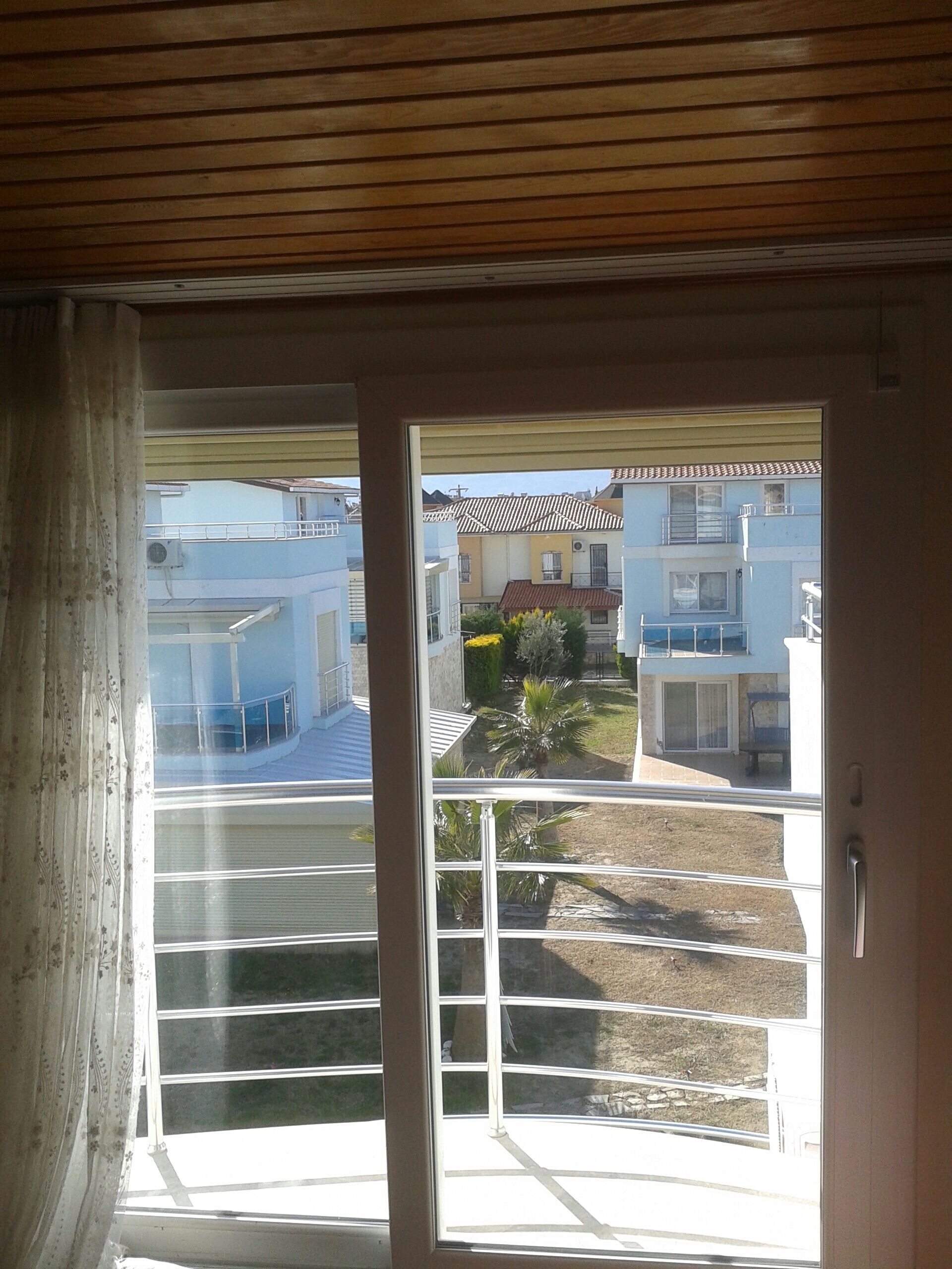 Beautiful Room on the 3rd Floor for Rent in the Summer. A great view of the mountains of Guzelcamli. Corridor with private bathroom and shower.French balcony with large sliding door window and a large balcony with seaview for breakfast on the 3rd Floor.Breakfast included. Towel/Linen changing. Single Bed. Airport Izmir 90km, City Center 12km, Grocery Store Migros 2 Minutes away, small Store in the Site, Cafe/Restaurants close by near the seaside or City Center. Small bus stop infront of the gate to City Center.5 Minutes walk to the seaside.It is a white sandy beach with some rocks.Olympic Open Swimming pool 5 steps from the terrace and garden.