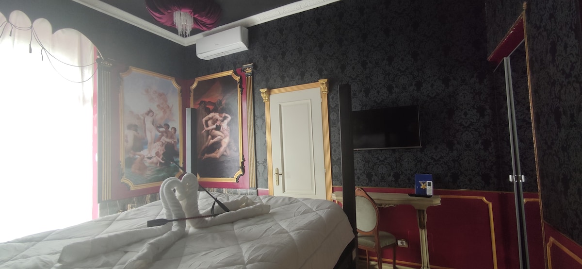 The bedroom has its own bathroom. TV, air conditioning, radiator, safe, Large garden equipped with barbecue, washing machines, sun loungers, rocking bed. Video surveillance parking. Ground floor facing the sea and 400 meters from downtown. Quiet area. Shared kitchen. Breakfast included, drinks no stop , linen change every 3 days. The bedroom is dark style, not suitable for children.