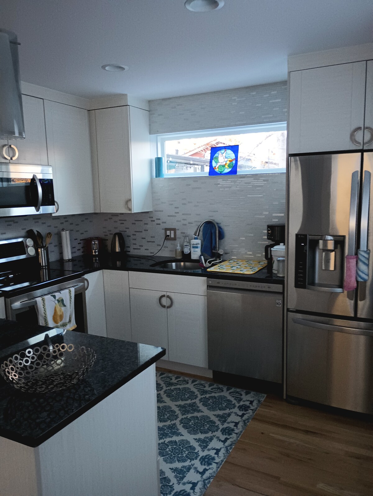 This garden-level space offers natural light through full-sized windows, giving it a warm and inviting atmosphere with slightly lower ceilings (6'1" - 6'3") that add to its cozy charm. While I reside in the separate upper level, both living spaces have their own private entrances and no connecting interior access. I've also taken thoughtful steps to minimize noise so you can enjoy the stay undisturbed.