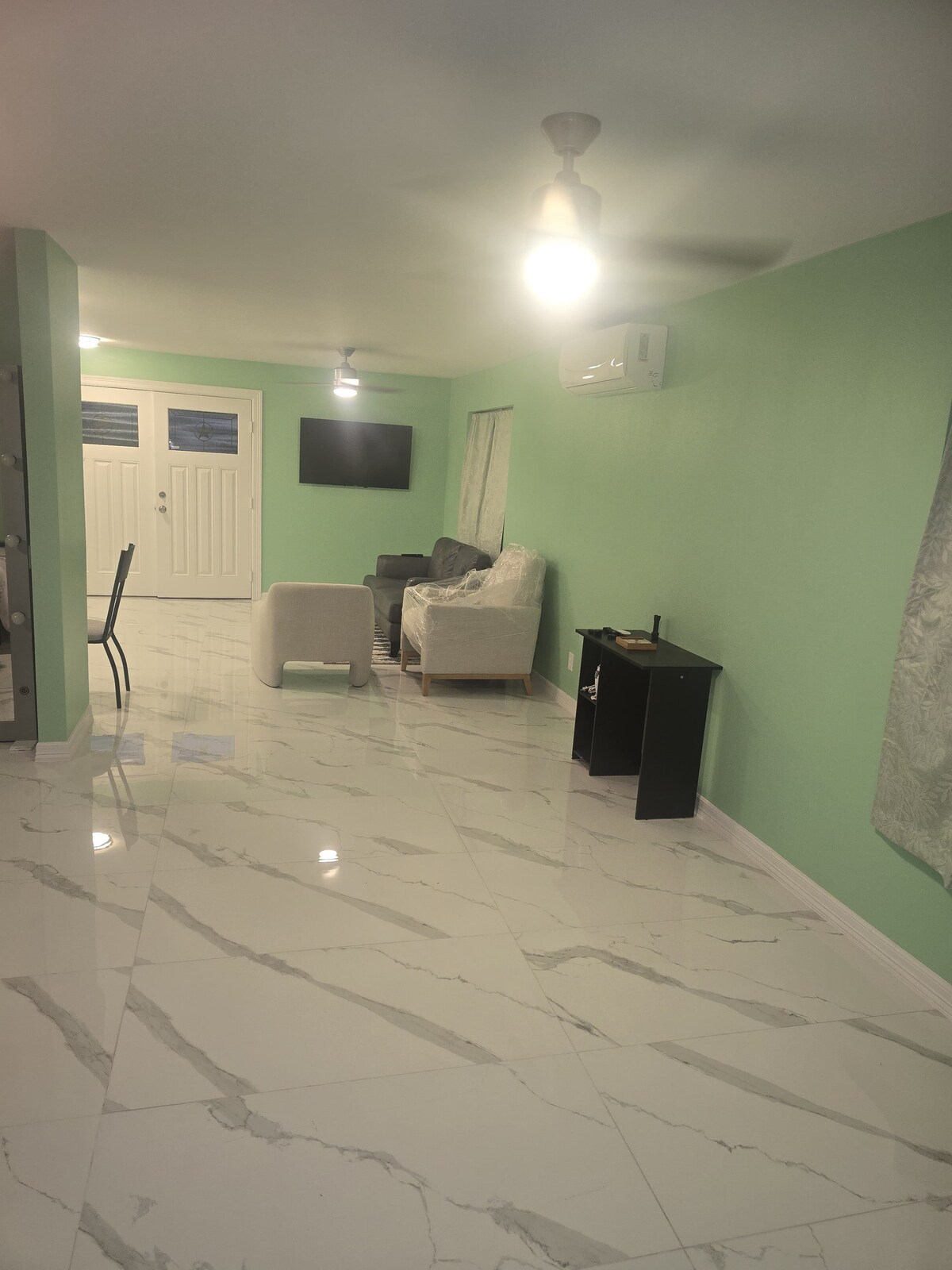 Mexican style eclectic decor. Building is constructed of solid brick with concrete roof with hvac. The first home to be built in the neighborhood and part of my childhood home. Full galley kitchen with 1 smart TV. High speed Spectrum Business WIFI, washer/dryer convenience and assigned parking inside the gated premises.