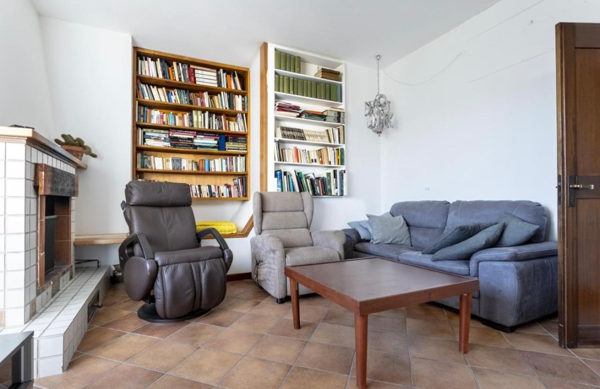 Guests have access to a shared kitchen area, as well as the large living room with sofas, coffee tables, bookcase, buffet, coffee maker.